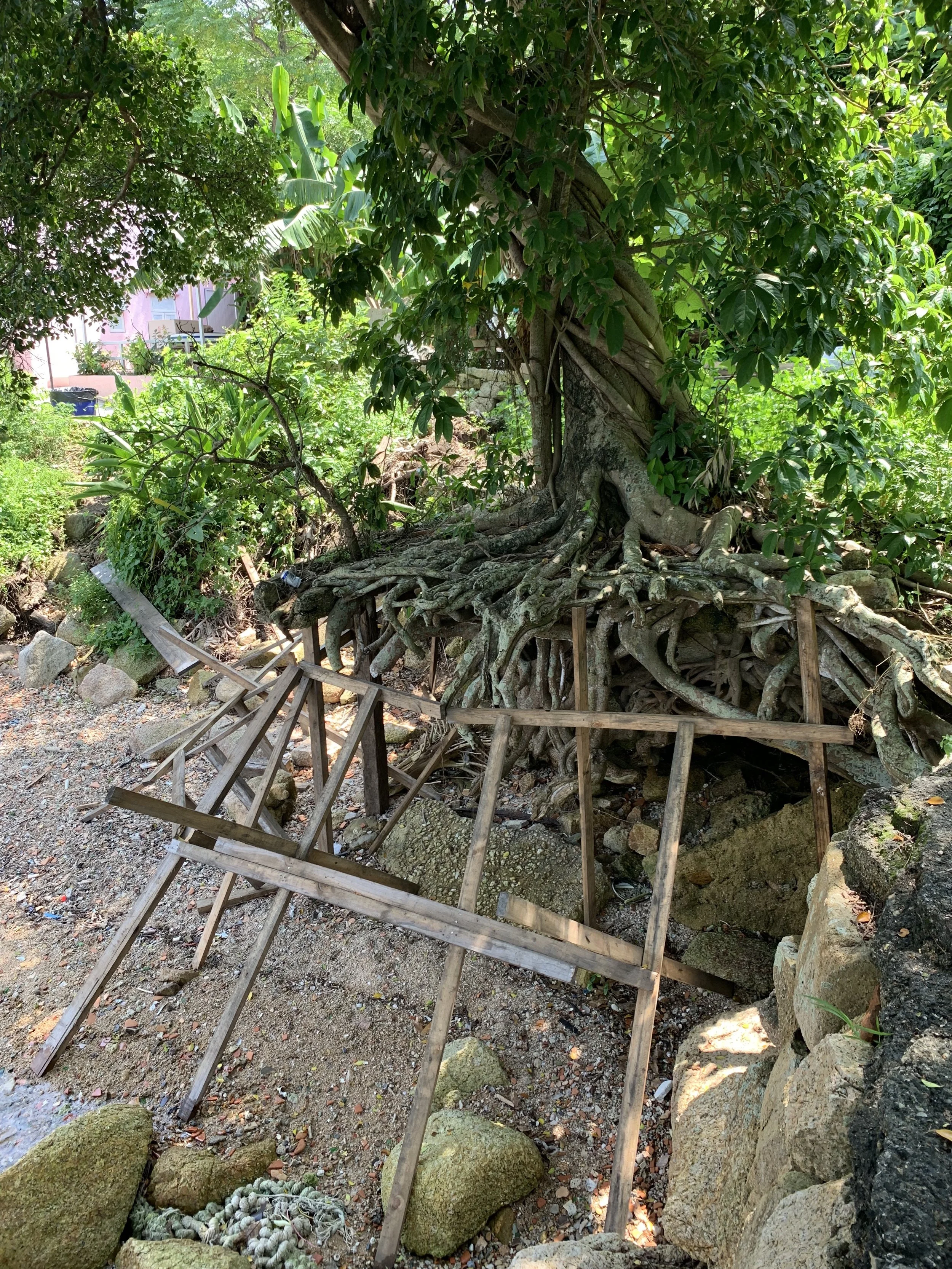 The endeavors on Po Toi Island continued with the Ancient Tree Defense, designed to protect a seaside tree from collapsing because the tides brought the soil underneath away, creating a void below the tree. We designed a gabion retaining wall, filled with bricks which is porous and does not drench the soil around. Being next to the pier, it also allows for a breezy and sheltered space for people to sit and wait for the ferry back.